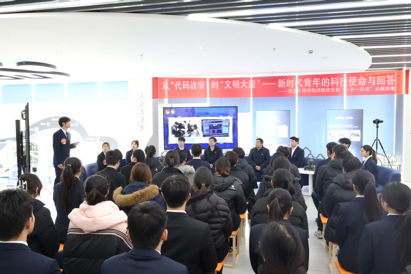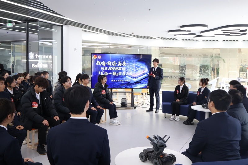 1月4日,信息工程学院鸿鹄团支部“从‘代码战壕’到‘文明大厦’---新时代青年的科技使命与回答”主题团课在百度智能网联基地举行。校党委委员、副校长檀祝平参与活动并寄语团员青年,安谷科技工程师与现场团员青年深入互动。