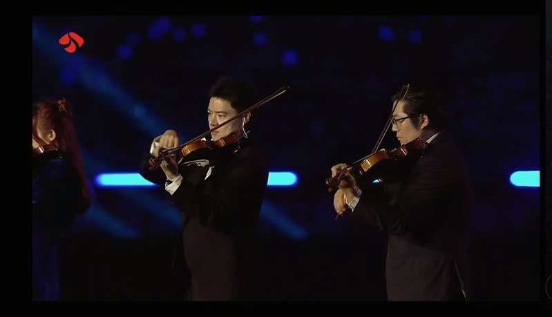 小提琴里的“足球交响”。 在万众瞩目的开幕式现场,一场激情澎湃的歌曲联唱点燃了全场气氛。 作为开幕式现场乐队的一员,学校团委的谢振威老师参与了开幕式歌曲联唱的现场演奏,用动人的旋律演绎绿茵场上的浪漫。